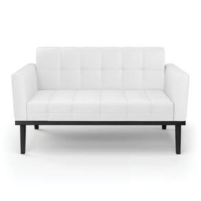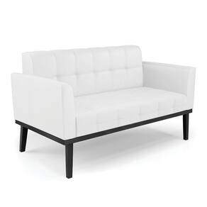 Poltrona Namoradeira Decorativa Pés Fixo Em Madeira Preto Pu Branco - Blush