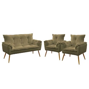 Poltrona Namoradeira e 2 Poltronas Opala Veludo Aradecor - Marrom Cacau