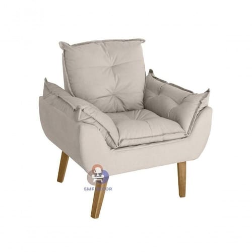 Poltrona Opala agrega beleza e conforto. Produto com design moderno e luxuoso. Fabricada com produtos de altíssima qualidade, composto por pés quadrado de madeira de eucalipto, percinta elástica, grampo em aço galvanizado, assento com fibra de silicone, o encosto e braça com fibra de silicone e espuma densidade D-18, para dispor o melhor conforto possível, estrutura em madeiras eucalipto.
