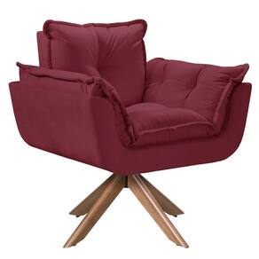 Poltrona Opala Giratória Madeira Suede - Bordô