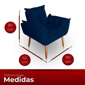 Poltrona Opala Para Sala Com Puff Reforçada Suede Azul Marinho