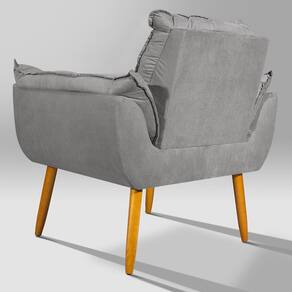 Poltrona Opala Pés Palitos para Recepção Suede Cinza - Vallisa Decor