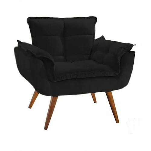 Poltrona opala A Poltrona Opala possui um conforto além de ser um produto lindo com design moderno e luxuoso. Fabricada com produtos de altíssima qualidade composto por pés palito madeira de eucalipto percinta elástica 50 mm grampo em aço galvanizado já o assento é em espuma densidade D-26 o encosto com densidade D-18 e os braços com espuma D-23 para dispor o melhor conforto possível estrutura em madeiras eucalipto pinus e mdf.