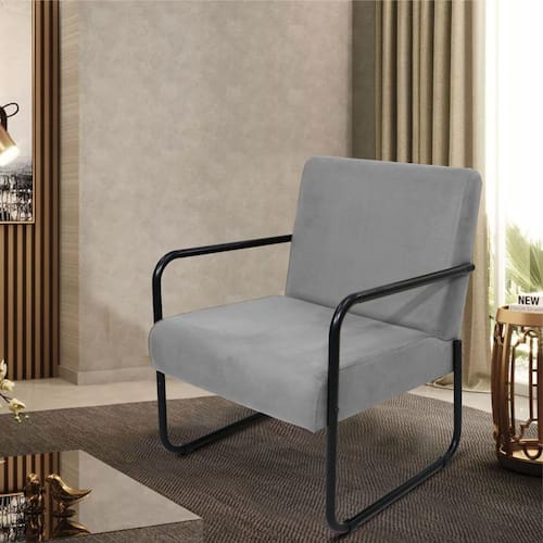 Poltrona Opala Chumbo Tecido em Veludo Premium Nordeste Flex