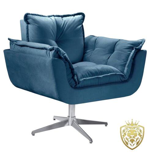 Poltrona Opalla Giratória Alumínio Suede D Salla - Azul Marinho