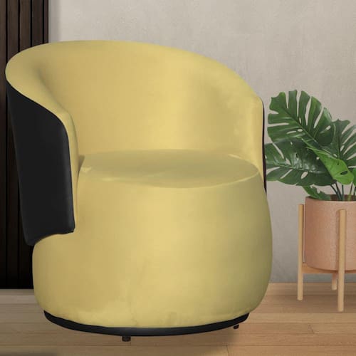 Poltrona Orgânica Beatriz Com Composê Corino Preto Suede Amarelo - Vallisa Decor
