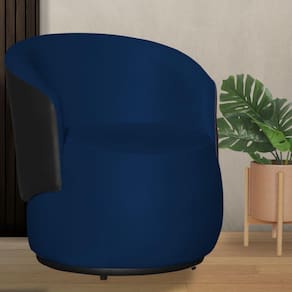 Poltrona Orgânica Beatriz Com Composê Corino Preto Suede Azul Marinho - Vallisa Decor