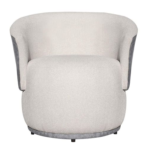 Aproveite o máximo de conforto e design com nossa poltrona orgânica exclusiva. Fabricada com materiais de alta qualidade e design inovador, revestimento em tecido boucle mesclado no tecido calacata. O bouclé é um tipo de tecido caracterizado por sua textura encaracolada ou em loop. É macio ao toque, com um aspecto rico e texturizado, mesclado no tecido calacata refere-se a um tipo de tecido que possui uma estampa inspirada no mármore calacata, conhecido por sua aparência luxuosa e sofisticada. O calacata é caracterizado por veios cinza sobre um fundo branco puro, criando um visual elegante e atemporal. Quando esse padrão é reproduzido em tecido e utilizado para estofar poltronas, adiciona um toque de elegância e estilo à decoração de interiores.