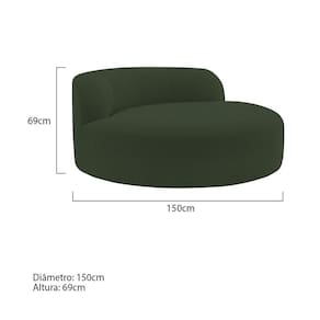 Descubra a Poltrona Redonda Chaise Rússia, uma peça que combina perfeitamente estilo moderno com conforto envolvente. Seu design circular e acolhedor não apenas oferece um visual contemporâneo, mas também proporciona um espaço íntimo e relaxante em qualquer ambiente da sua casa. Ideal para criar um canto de leitura acolhedor na sala de estar, ou para adicionar um toque de elegância ao seu escritório, esta poltrona se destaca pela sua versatilidade e conforto. Medidas da Poltrona: Diâmetro: 150 cm Altura: 69 cm Observações importantes - Produto para uso residencial em ambiente interno, não devendo ficar exposto diretamente ao sol, calor e umidades excessivas. - Pode haver alguma diferença de tonalidade entre a imagem e o produto real, por conta do tratamento de imagens e a calibração de cores do seu monitor. - As imagens são meramente ilustrativas, não acompanham objetos de decoração e eletrônicos. - Ao receber a mercadoria, o cliente deve verificar as condições da embalagem, caso haja alguma não assine o de . - Montagem, desmontagem e outras instalações serão de responsabilidade do cliente. Não nos responsabilizamos, no ato da , por subir escadas/elevadores ou pelo por guincho em apartamentos. Eventuais despesas são de responsabilidade do comprador. - Confira as dimensões do produto e certifique-se de que passará normalmente por supostos elevadores, portas, escadas e/ou corredores de sua residência