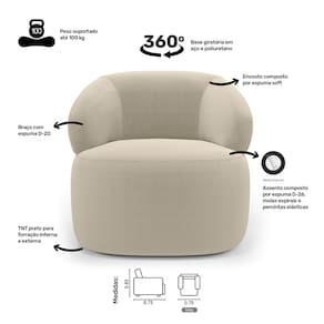 As percintas elásticas no assento aumentam a resistência e durabilidade, enquanto os braços, com espuma D-20, oferecem suporte adicional. A base em aço giratório e poliuretano não só permite uma rotação suave, mas também acrescenta um toque moderno ao seu espaço.