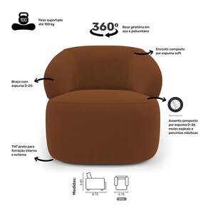 As percintas elásticas no assento aumentam a resistência e durabilidade, enquanto os braços, com espuma D-20, oferecem suporte adicional. A base em aço giratório e poliuretano não só permite uma rotação suave, mas também acrescenta um toque moderno ao seu espaço.