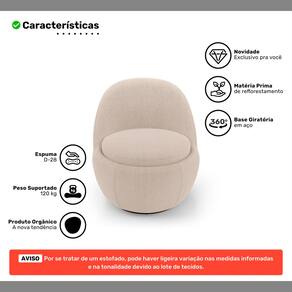 Poltrona Orgânica Living Memphis Base Giratória Bouclê Bege - Abmaza