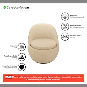 Poltrona Orgânica Living Memphis Base Giratória Linho Bege - Abmaza