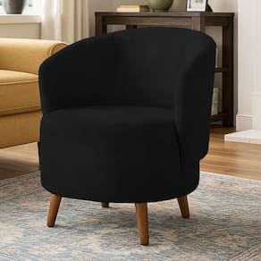 Poltrona Orgânica Suede Aisha Sala Escritório Pé Madeira Preto - Preto