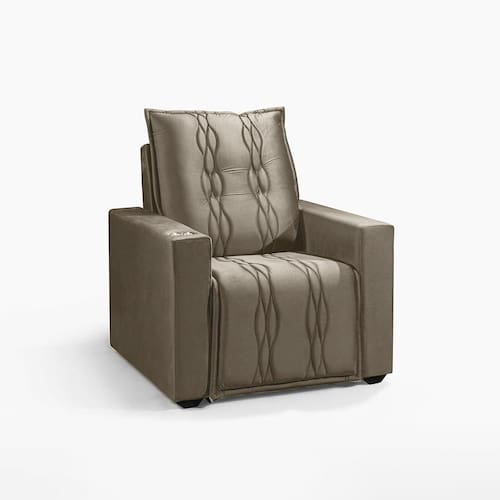 Especificação Técnica: -Material da Estrutura: Madeira de Reflorestamento; -Fixação da Estrutura: Grampos Galvanizados; -Material do Enchimento do Encosto: Fibra Siliconada, EspumaD23 e Percinta Elástica -Material do Enchimento do Assento: Espuma D28 Macia; -Material de Sustentação do Assento: Percinta Elástica e Molas Ensacadas; -Material do Revestimento: Tecido Veludo; -Almofadas dos Assentos: Fixas; -Almofadas do Encosto: Fixas; -Tipo de Encosto: Reclinável; -Tipo de Conforto: Hiper Macio; -Peso Suportado: 120 kg Por Pessoa; -Quantidade de Lugares: 1 Lugar; -Garantia: 3 Meses; -Necessita de Montagem? Sim; -Dimensões do Produto (LarguraXProfundidadeXAltura): 98x95x112cm; -Conteúdo da Embalagem: 1 Poltrona.