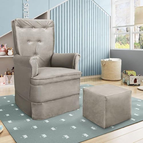 Poltrona Amamentação Valentina com Balanço e Puff traz conforto e beleza para o bebê e a mamãe. Feita com matéria-prima de alta qualidade, a poltrona possui estofado revestido por um veludo de toque suave que proporciona aconchego para os momentos de amamentação.