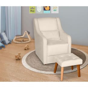 Poltrona para Amamentação Glamour com Puff e Almofada Bege - Poltrona para Amamentação Glamour com pés em Madeira