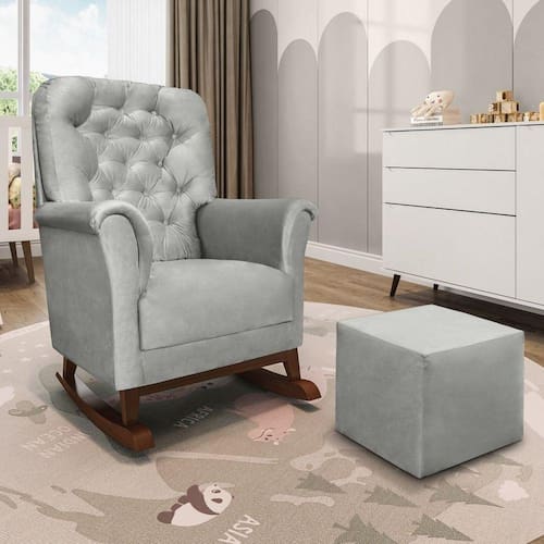 Poltrona Amamentação Agatha pés canoa com puff , traz conforto e beleza para o bebê e a mamãe. Feita com matéria-prima de alta qualidade, a poltrona possui estofado revestido por um veludo cinza de toque suave que proporciona um toque clássico e aconchego para os momentos de amamentação.