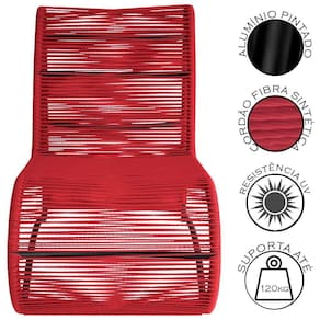 Poltrona Para área Externa Portugal Em Alumínio E Cordão Vermelho A Poltrona Portugal combina conforto e seguranca, sendo uma excelente escolha para areas como jardins, varandas e piscinas. Fabricada totalmente em aluminio, ela recebe uma pintura eletrostatica que garante maior resistencia a intemperies, evitando ferrugem e prolongando sua vida util. O acabamento e feito com Cordao de Fibra Sintetica, material de alta qualidade que resiste bem ao sol, tornando-a ideal para areas externas como varandas, jardins ou piscinas. Ela tem capacidade para suportar ate 120 kg, o que a torna confortavel e segura. ESPECIFICACOES TECNICAS: - Material da Estrutura: Aluminio; - Material do Assento: Cordao Fibra Sintetica; - Material do Encosto: Cordao Fibra Sintetica; - Possui Regulagem de Altura? Nao; - E Giratoria? Nao; - Quantidade de Lugares: 1 Lugar; - Peso Total Suportado: 120kg; - Garantia: 3 Meses; - Necessita de Montagem: Nao; - Instrucoes de Cuidado: Utilizar apenas pano umedecido com agua e sabao neutro; - Dimensoes do Produto (LarguraXProfundidadeXAltura): 60x90x81cm - Conteudo da Embalagem: 01 Cadeira. Marca: ACESSE MÓVEIS