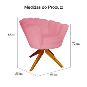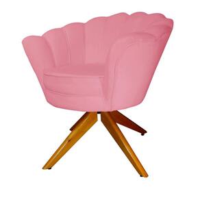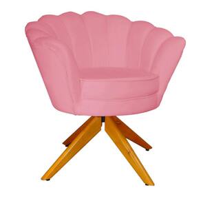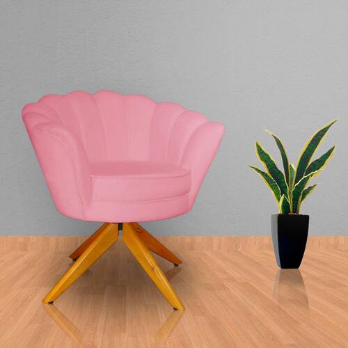Poltrona Para Escritório Com Base Giratória de Madeira Pétala Suede Rosa Barbie - LM DECOR