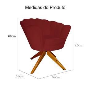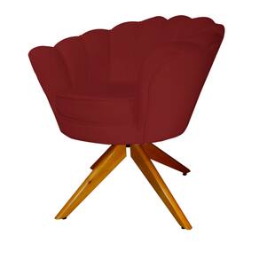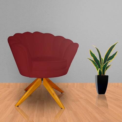 Poltrona Para Escritório Com Base Giratória de Madeira Pétala Suede Vermelho Bordo - LM DECOR