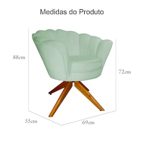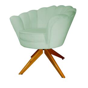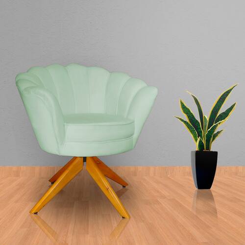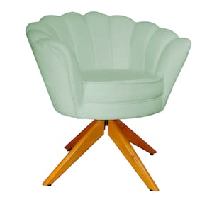 Poltrona Para Escritório Com Base Giratória de Madeira Pétala Veludo Verde Chá - LM DECOR