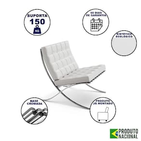 AS IMAGENS SÃO MERAMENTE ILUSTRATIVAS E PODEM SOFRER VARIAÇÕES DE COR E PEQUENOS DETALHES DE ACORDO COM O SEU MONITOR, ILUMINAÇÃO DO AMBIENTE E ATÉ MESMO A SUA PERCEPÇÃO VISUAL.Poltrona para Leitura Barcelona com Puff Courissimo Cromada - Branco