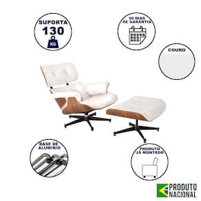 AS IMAGENS SÃO MERAMENTE ILUSTRATIVAS E PODEM SOFRER VARIAÇÕES DE COR E PEQUENOS DETALHES DE ACORDO COM O SEU MONITOR, ILUMINAÇÃO DO AMBIENTE E ATÉ MESMO A SUA PERCEPÇÃO VISUAL.Poltrona para Leitura Charles Eames com Puff Couro Branco