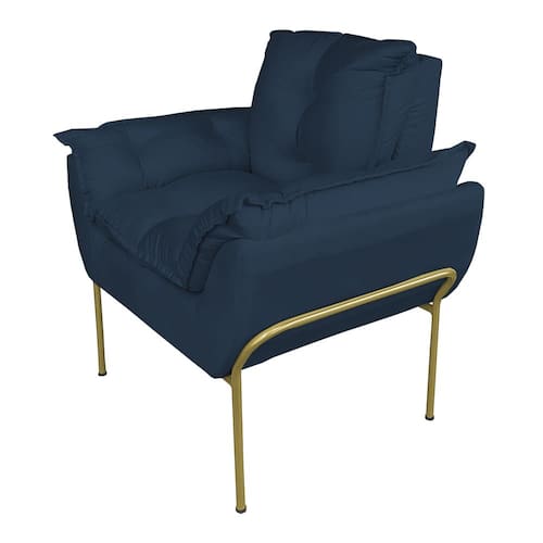 Poltrona para Sala Base Dourada Suede Azul Marinho - Vallisa Decor