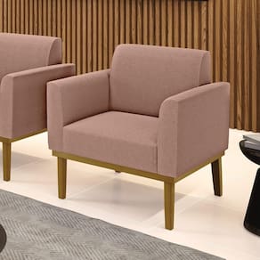 Poltrona Para Sala Base Madeira Castanho Marisa Bouclê Rosê D03 - D`rossi - Marrom
