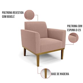 Poltrona Para Sala Base Madeira Castanho Marisa Bouclê Rosê D03 - D'rossi