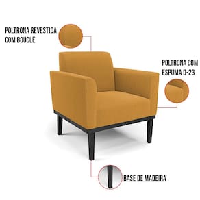 Poltrona para Sala Base Madeira Preto Marisa Bouclê D03 - D`Rossi - Mostarda