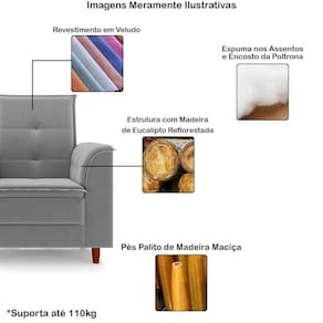 Poltrona Para Sala Confortável Decorativa Isa Veludo Cinza