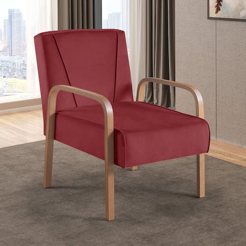 O veludo, com sua textura rica e brilho sutil, adiciona uma dimensão de opulência ao ambiente, tornando a Poltrona Ágata um verdadeiro destaque em qualquer sala de estar, escritório ou suíte. Os pés de madeira esculpidos e as proporções cuidadosamente equilibradas conferem um charme clássico, enquanto a forma ergonômica proporciona um conforto supremo. Acompanha Almofadas extras: Não Acompanha Puff: Não Almofada do assento: Não Possui Almofada do encosto: Não Possui Altura do assento até o chão: 45 cm Altura do Encosto: 45 cm Ambiente Principal: Sala de Estar Complexidade da Montagem: Baixa: pode ser montado por uma pessoa sozinha Cor: Vermelho Cor do Produto: Vermelho Design Assinado: Não Enchimento do Braço: Não Possui Encosto para a Cabeça: Não Estampado: Não Extensível: Não Itens Inclusos: 1 Poltrona Material do Braço: Madeira Material dos Pés: Aço Modelo de Poltrona: Fixo Necessita Montagem: Sim Peso: 16 kg Possui Percintas Elásticas: Não Possui Pés: 04 Possui Rodízio: Não Recomendações de Uso, Manutenção e Limpeza: Para a limpeza, utilizar pano umedecido em água, sabão neutro e escova de cerdas macias, deixando secar à sombra. Em caso de excesso de poeira, usar aspirador de pó. Sistema de Montagem: Parafusos Suporta Até (kg): 120 kg Tecido Predominante: Veludo Tipo de Assento: Fixo Tipo de Encosto: Fixo Tipo de Poltrona: Decorativa