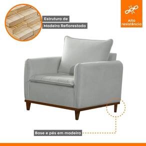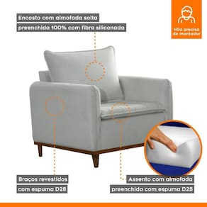 Apresentamos nossa poltrona de luxo, projetada para proporcionar conforto incomparável e estilo elegante. Com estofamento de alta qualidadel, oferece o máximo em relaxamento. Seu design contemporâneo e durabilidade excepcional fazem o complemento perfeito para qualquer espaço. Transforme sua casa ou escritório em um oásis de conforto e sofisticação com nossa poltrona. Acompanha Almofadas extras: Não Acompanha Puff: Não Almofada do assento: Fixa Almofada do encosto: Removível Altura do assento até o chão: 43 Altura do Encosto: 34 Altura dos Pés: 13 Ambiente Principal: Sala de Estar Complexidade da Montagem: Baixa: pode ser montado por uma pessoa sozinha Cor: Jolie/Prata Cor do Produto: Jolie/Prata Design Assinado: Não Enchimento do Assento: Espuma D-28 Enchimento do Braço: Espuma D-28 Enchimento do Encosto: Fibra Siliconada Encosto para a Cabeça: Não Estampado: Não Extensível: Não Firmeza do Assento: Macio Informações Complementares: Molas Espiral Itens Inclusos: 1 Poltrona, kit de ferragens, orientação de montagem Linha ou Coleção: Armany Manual de Montagem e Instalação: https://product-hub-prd.madeiramadeira.com.br/903985/documents/a108d82d-399b-4f8b-baf8-6c953d2f288219020118.pdf Material do Braço: 10cm revestidos com Espuma D-28 e manta acrílica Material dos Pés: Madeira Modelo de Poltrona: Fixo Necessita Montagem: Sim Origem do Produto: Nacional Peso: 20 Possui Percintas Elásticas: Sim Possui Pés: 04 Possui Rodízio: Não Recomendações de Uso, Manutenção e Limpeza: A limpeza do revestimento deve ser feita com escova ou tecido de algodão branco levemente umedecidos em água morna, sabão neutro ou produto específico. Não usar produtos corrosivos nem a base de solventes, como: cloro, alvejantes, detergentes, entre outros;Não expor o estofado à luz direta. Mantenha portas e janelas sempre protegidas com cortinas e blackout. A exposição contínua à radiação da luz, danifica o revestimento, apodrecendo os fios, trincando a superfície e desbotando as cores;Não lavar o revestimento das almofadas pois pode desfiá-las, abrindo as costuras;Não utilizar o estofado para fins diferentes do que foi projetado: ficar em pé, pular, arrastar, sentar nos braços, peso na caixa traseira, entre outros tipos de ações que poderão danificar o produto. Resistente à Chuva: Não Sistema de Montagem: Parafusos Suporta Até (kg): 120 Tecido Predominante: Veludo Tipo de Assento: Fixo Tipo de Encosto: Fixo Tipo de Espuma do Assento: Soft Tipo de Espuma do Encosto: Fibra Siliconada Tipo de Poltrona: Decorativa