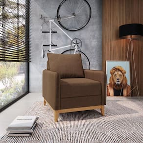 Modelo Lugano da KF Estofados, é produzido com qualidade e proporciona muito conforto, modelos semi-montados que viajam em caixas de papelão com mais segurança e com menos risco de danos, facilitando as entregas nos elevadores e escadarias de prédios. Produzido com madeira ecologicamente correta, persintas elásticas resistentes, espumas certificadas, almofadas com fibra siliconada que proporcionam mais conforto e durabilidade. Acompanha Almofadas extras: Não Acompanha Puff: Não Almofada do assento: Fixa Almofada do encosto: Removível Altura do assento até o chão: 45 cm Altura do Encosto: 42 cm Altura dos Pés: 15 cm Ambiente Principal: Sala de Estar Complexidade da Montagem: Baixa: pode ser montado por uma pessoa sozinha Cor: Marrom Cor do Produto: Marrom Design Assinado: Não Enchimento do Assento: Espuma D-26 Enchimento do Braço: Espuma D-26 Enchimento do Encosto: Espuma D-26 Encosto para a Cabeça: Não Estampado: Não Extensível: Não Firmeza do Assento: Médio Informações Complementares: Poltrona transportada em caixa. Itens Inclusos: 1 Poltrona e Manual de Montagem Manual de Montagem e Instalação: https://product-hub-prd.madeiramadeira.com.br/892881/documents/db16b677-79a2-4661-96dc-b1d480c00e52179884078986774815805.pdf Material do Braço: Madeira Eucalipto Material dos Pés: Madeira Eucalipto Modelo de Poltrona: Fixo Necessita Montagem: Sim Origem do Produto: Nacional Peso: 25 kg Possui Percintas Elásticas: Sim Possui Pés: 04 Possui Rodízio: Não Recomendações de Uso, Manutenção e Limpeza: Deve ser feita com pano macio e seco ou levemente umedecido com água e sabão neutro. Não devem ser utilizados abrasivos como palha de aço e objetos cortantes. Sistema de Montagem: Parafusos e Minifix Suporta Até (kg): 100 kg Tecido Predominante: Linho Tipo de Assento: Fixo Tipo de Encosto: Fixo Tipo de Espuma do Assento: Espuma Convencional Tipo de Poltrona: Decorativa