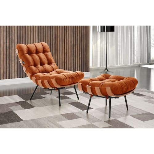 Poltrona para Sala de Estar Coral com Puff - caixa com 2 Unidade - Terracota.