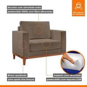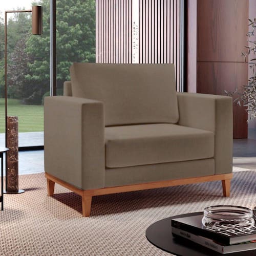 Além de ser uma excelente aliada na hora de transformar seu lar em um ambiente mais receptivo e bonito, esta linda Poltrona Emily é um mimo para decoração de qualquer cômodo de sua preferencia. Confeccionada com espumas, ela é perfeita para que você acomode e relaxe seu corpo para ler um livro ou assistir aos seus programas de TV favoritos. A estrutura possui madeira em Eucalipto, que além de resistente, é proveniente de reflorestamento e, portanto, ecologicamente correta. Por fim, o revestimento em Linho, deixa o ambiente muito mais clean e convidativo. Não é demais? Aproveite! Acompanha Almofadas extras: Não Acompanha Puff: Não Almofada do assento: Fixa Almofada do encosto: Fixa Altura do assento até o chão: 46 cm Altura do Encosto: 54 cm Altura dos Pés: 13 cm Ambiente Principal: Sala de Estar Cor: Veludo Bege Cor do Produto: Veludo Bege Design Assinado: Não Enchimento do Assento: Espuma D-28 Enchimento do Braço: Espuma D-18 Enchimento do Encosto: Espuma D-18 Encosto para a Cabeça: Não Estampado: Não Extensível: Não Firmeza do Assento: Médio Informações Complementares: Assento com molas espirais Itens Inclusos: 1 Poltrona Material do Braço: Madeira de Eucalipto e Espuma Material dos Pés: Madeira Modelo de Poltrona: Fixo Necessita Montagem: Não Origem do Produto: Nacional Peso: 25,4 kg Possui Percintas Elásticas: Sim Possui Pés: 04 Possui Rodízio: Não Recomendações de Uso, Manutenção e Limpeza: Não utilizar produtos químicos. Não utilizar produtos abrasivos. Não molhar. Utilizar pano macio e seco ou levemente umedecido. Suporta Até (kg): 120 kg Tecido Predominante: Veludo Tipo de Assento: Fixo Tipo de Encosto: Fixo Tipo de Espuma do Assento: Espuma Convencional Tipo de Poltrona: Decorativa