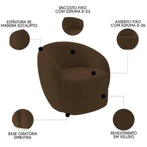 A Poltrona para Sala de Estar Giratória Orgânica Garbin K04 Veludo Marrom, da Mpozenato é uma verdadeira obra de arte no mundo do design de interiores, conheça!