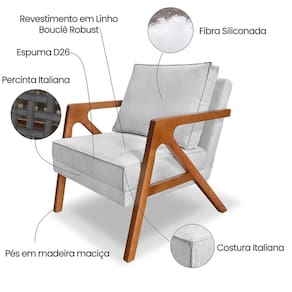 A Poltrona Lier de alto padrão vem com revestimento em Linho Boucle Robust de alta qualidade