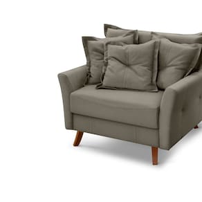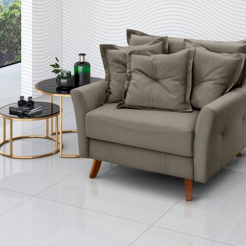 A Poltrona Love oferece conforto excepcional, materiais de alta qualidade, longa durabilidade e versatilidade, tudo isso a um preço acessível. O conforto é assegurado pelo luxuoso tecido e pela maciez da espuma no assento, sua estrutura garante uma durabilidade excepcional. Adquira sua poltrona Love agora mesmo e recepcione seus convidados com conforto e elegância incomparáveis Acompanha Almofadas extras: 04 Acompanha Puff: Não Almofada do assento: Fixa Almofada do encosto: Removível Altura do assento até o chão: 43 cm Altura do Encosto: 42 cm Altura dos Pés: 17 cm Ambiente Principal: Sala de Estar Cor: Castor Cor do Produto: Castor Design Assinado: Não Enchimento do Assento: Espuma D-28 Enchimento do Braço: Espuma D-28 Encosto para a Cabeça: Não Estampado: Não Extensível: Não Firmeza do Assento: Macio Informações Complementares: Não Itens Inclusos: 1 poltrona 4 Almofadas Material do Braço: Sim Material dos Pés: Madeira Modelo de Poltrona: Fixo Necessita Montagem: Não Origem do Produto: Nacional Peso: 35 kg Possui Percintas Elásticas: Sim Possui Pés: 04 Possui Rodízio: Não Recomendações de Uso, Manutenção e Limpeza: Não Suporta Até (kg): 120 kg Tecido Predominante: Veludo Tipo de Assento: Fixo Tipo de Encosto: Fixo Tipo de Espuma do Assento: Soft Tipo de Poltrona: Decorativa Marca: ESTOFADOS GRAFANI