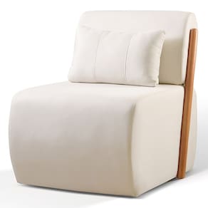 Inspirada em linhas orgânicas, seu design minimalista e envolvente, sem braços aparentes, e o charmoso detalhe lateral em madeira, trazem a versatilidade e a distinção que o seu ambiente moderno precisa. É perfeita para criar aquele canto de leitura aconchegante que você deseja.