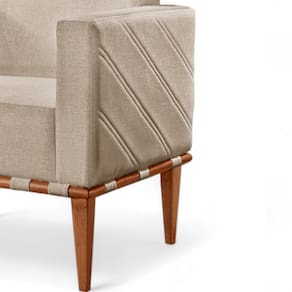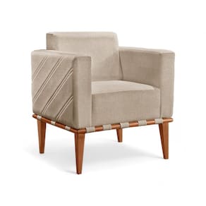 Verificar dimensões para acesso ao local de uso Acompanha Almofadas extras: Não Acompanha Puff: Não Almofada do assento: Não Possui Almofada do encosto: Fixa Altura do assento até o chão: 46 cm Altura do Encosto: 40 cm Altura dos Pés: 26 cm Ambiente Principal: Sala de Estar Complexidade da Montagem: Baixa: pode ser montado por uma pessoa sozinha Cor: Bege Claro Cor do Produto: Bege Claro Design Assinado: Não Enchimento do Braço: Espuma D-26 Enchimento do Encosto: Espuma D-26 Encosto para a Cabeça: Não Estampado: Não Extensível: Não Informações Complementares: Bordado na lateral do braço. Detalhe no acabamento da madeira da base. Itens Inclusos: 1 Poltrona Linha ou Coleção: PREMIUM Material do Braço: Madeira Estofada Material dos Pés: Madeira Maciça Modelo de Poltrona: Fixo Necessita Montagem: Sim Origem do Produto: Nacional Peso: 18 kg Possui Percintas Elásticas: Sim Possui Pés: 04 Possui Rodízio: Não Recomendações de Uso, Manutenção e Limpeza: Utilizar um pano levemente umedecido, seguido de pano seco.Evitar exposição ao sol, para que não sofra alterações na cor do tecido.Não limpar com escovas ou semelhantes. Sistema de Montagem: Enroscar os pés na base Suporta Até (kg): 140 kg Tecido Predominante: Linho Tipo de Assento: Fixo Tipo de Encosto: Fixo Tipo de Espuma do Encosto: Soft Tipo de Poltrona: Decorativa