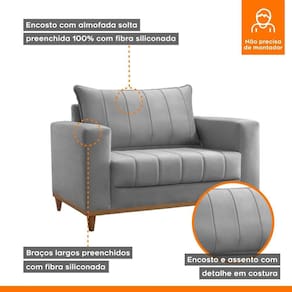 Apresentamos nossa poltrona de luxo, projetada para proporcionar conforto incomparável e estilo elegante. Com estofamento de alta qualidadel, oferece o máximo em relaxamento. Seu design contemporâneo e durabilidade excepcional fazem o complemento perfeito para qualquer espaço. Transforme sua casa ou escritório em um oásis de conforto e sofisticação com nossa poltrona. Acompanha Almofadas extras: Não Acompanha Puff: Não Almofada do assento: Fixa Almofada do encosto: Removível Altura do assento até o chão: 44 Altura do Encosto: 47 Altura dos Pés: 13 Ambiente Principal: Sala de Estar Complexidade da Montagem: Baixa: pode ser montado por uma pessoa sozinha Cor: Jolie Prata Cor do Produto: Jolie Prata Design Assinado: Não Enchimento do Assento: Espuma D-28 Enchimento do Braço: Fibra Siliconada Enchimento do Encosto: Fibra Siliconada Encosto para a Cabeça: Não Estampado: Não Extensível: Não Firmeza do Assento: Macio Informações Complementares: Molas Espiral Itens Inclusos: 1 Poltrona, kit de ferragens, orientação de montagem Linha ou Coleção: Noah Manual de Montagem e Instalação: https://product-hub-prd.madeiramadeira.com.br/903972/documents/4ea2bf3f-642b-4771-8958-9ee82dd18c7519019868.pdf Material do Braço: Estrutura de madeira revestido com fibra siliconada e manta acrílica Material dos Pés: Madeira Modelo de Poltrona: Fixo Necessita Montagem: Sim Origem do Produto: Nacional Peso: 26 Possui Percintas Elásticas: Sim Possui Pés: 04 Possui Rodízio: Não Recomendações de Uso, Manutenção e Limpeza: A limpeza do revestimento deve ser feita com escova ou tecido de algodão branco levemente umedecidos em água morna, sabão neutro ou produto específico. Não usar produtos corrosivos nem a base de solventes, como: cloro, alvejantes, detergentes, entre outros;Não expor o estofado à luz direta. Mantenha portas e janelas sempre protegidas com cortinas e blackout. A exposição contínua à radiação da luz, danifica o revestimento, apodrecendo os fios, trincando a superfície e desbotando as cores;Não lavar o revestimento das almofadas pois pode desfiá-las, abrindo as costuras;Não utilizar o estofado para fins diferentes do que foi projetado: ficar em pé, pular, arrastar, sentar nos braços, peso na caixa traseira, entre outros tipos de ações que poderão danificar o produto. Resistente à Chuva: Não Sistema de Montagem: Parafusos Suporta Até (kg): 120 Tecido Predominante: Veludo Tipo de Assento: Fixo Tipo de Encosto: Fixo Tipo de Espuma do Assento: Soft Tipo de Espuma do Encosto: Fibra Siliconada Tipo de Poltrona: Decorativa