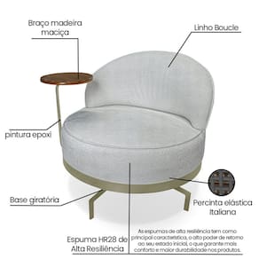 Poltrona Giratória Normah traz um design europeu que há torna única no mercado, revestida em linho Boucle tendência no mercado, sua base giratória em aço carbono a deixa resistente, Pintura epóxi, aplique braço em madeira maciça padrão exportação. Design incrível combina com todos ambientes.