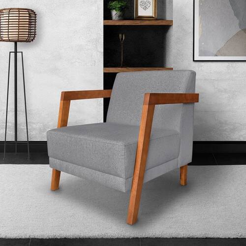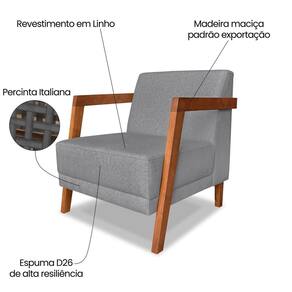 Poltrona para Sala de Estar Nyon Linho Cinza