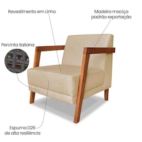 A Poltrona Nora traz um conforto excelente, braço em madeira maciça padrão exportação sua estrutura em madeira de reflorestamento, revestimento em Linho de alta qualidade, espumas HR de alta resiliência tem como principal característica, o alto retorno ao seu estado inicial, oque garante mais conforto e maior durabilidade nos produtos.