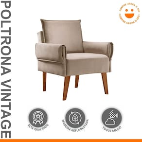Descrição: A Poltrona Vintage é ideal para quem deseja adicionar um toque único e sofisticado à sua sala de estar. Com design inspirado no estilo retrô, ela traz aconchego e personalidade ao ambiente. Seu formato acolhedor e elegante é perfeito para quem busca conforto e charme, sem abrir mão de um toque de modernidade.