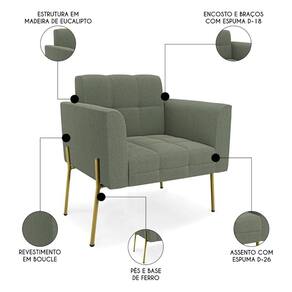 Se você quer um Kit Poltrona que combine com a sua Sala De Estar, recepção ou seu quarto, que ofereça conforto e qualidade? Então você vai adorar a Poltrona Para Sala Pé Metal Dourado Kit 2 Ana Bouclé Menta, da Ibiza!