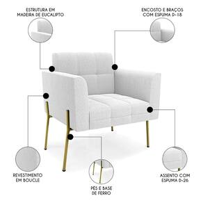Se você quer um Kit Poltrona que combine com a sua Sala De Estar, recepção ou seu quarto, que ofereça conforto e qualidade? Então você vai adorar a Poltrona Para Sala Pé Metal Dourado Kit 2 Ana Bouclé Off White, da Ibiza!
